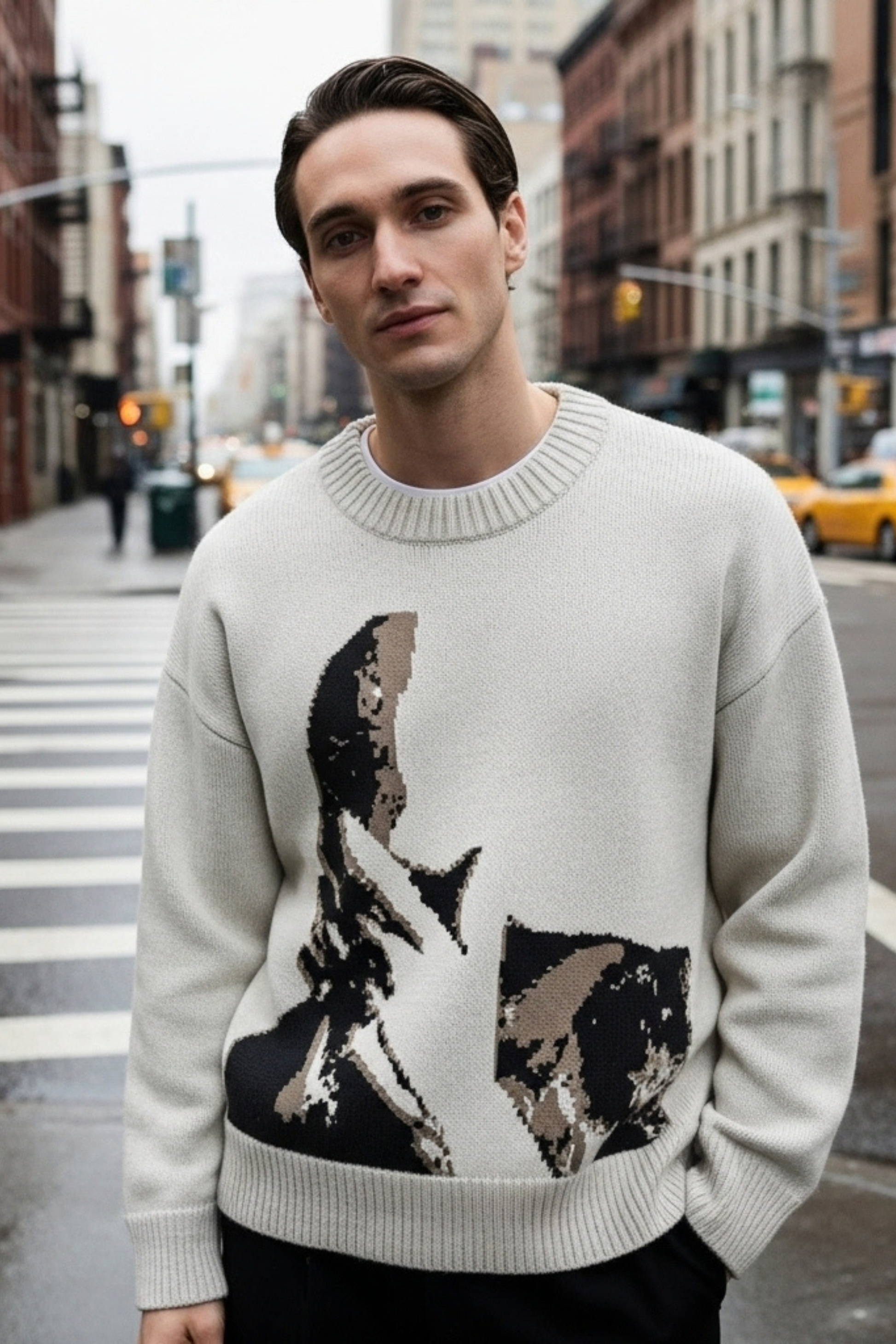 TheHidden Visage Knit Sweaterturns mystery into style with its striking abstract face design. Built with a relaxed fit and bold jacquard artwork, it’s not just a sweater, it’s wearable art.